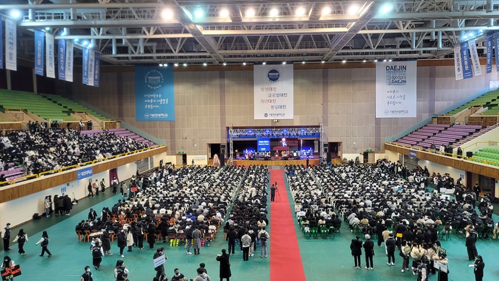 Daejin University held an entrance ceremony for incoming freshmen at the school’s main gymnasium on February 22nd to mark the start of the 2023 academic year.