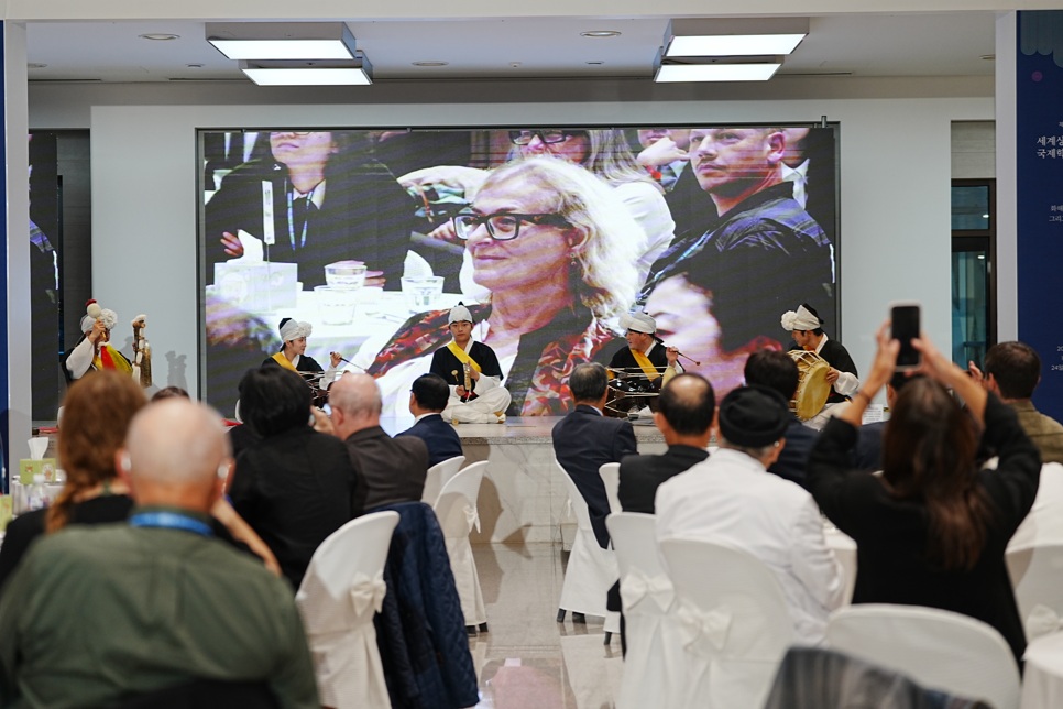 The visiting scholars joined a dinner prepared by the temple after touring the Yeoju Headquarters Temple. Held at the café lounge on the first floor of the museum, the dinner was attended by approximately 300 guests, including Lee Choong-woo, Mayor of Yeoju, Park Doo-hyung, Chairman of the Yeoju City Council, Na Jong-woo, former Director of the Jeonju Cultural Center, as well as advisory board members, executive committee members, and leaders of the religious order, who warmly welcomed the scholars of the World Sangsaeng Forum.