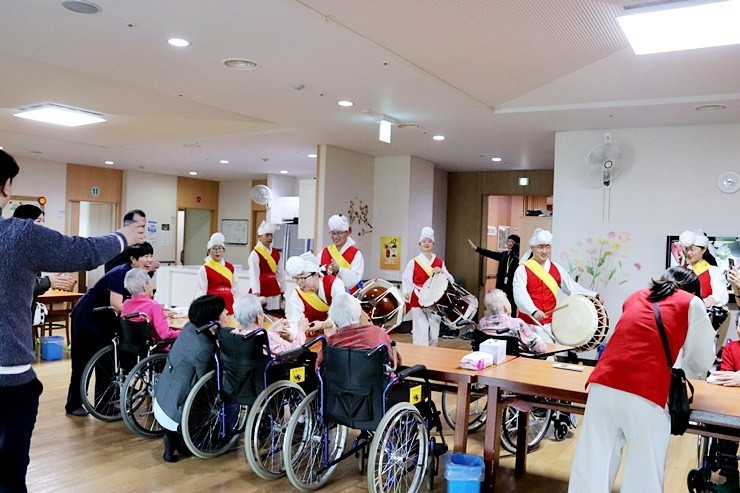 On February 18, 2019, Daejin International Volunteers Association’s Pulmul Team performed a Jisinbalgi event at Daesoon Jinrihoe Welfare Foundation. It was held to celebrate the fifteenth day of the new year and to wish for wellbeing and a good harvest. They visited each location in the facility starting from the first floor of the B-Wing building, and they went on to perform in the combined offices, corporate offices, patients units, and daycare center. They received heartfelt welcome from the senior citizens in all buildings. The Jisinbalgi performance at the welfare foundation ended with a grand finale at Daejin Youth Center. Youth Center.