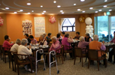 Family-like Care System: An elderly nursing unit with multiple rooms to accommodate patients individually; thereby providing them with increased privacy and protection. One unit includes eight to twelve single rooms and a large living room with a homelike atmosphere.