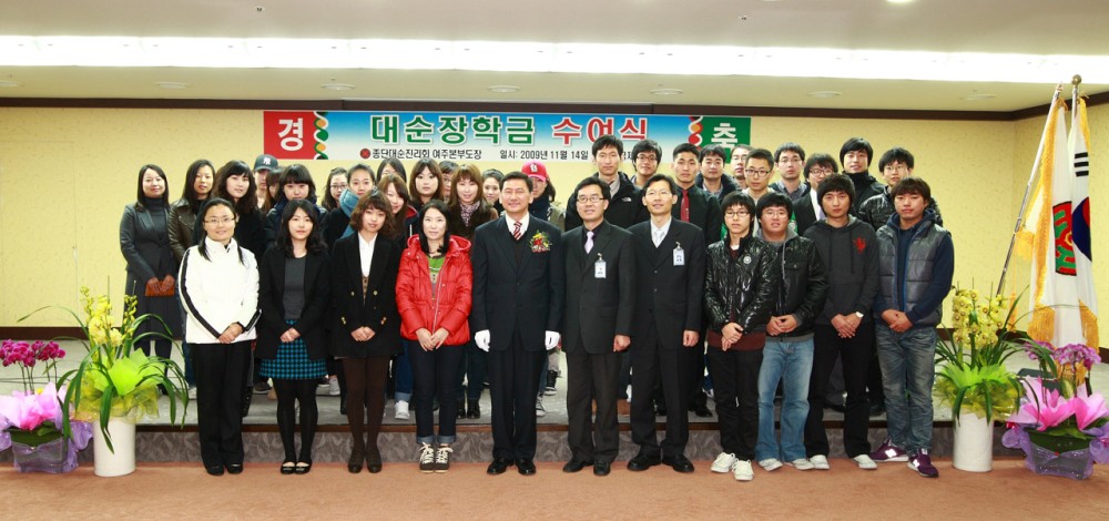 "In 1976, the Daesoon Scholarship Foundation was launched based on the following words of Dojeon: “Expand the amount of scholarship on a yearly basis in order to cultivate talented individuals for the benefit of the nation as well as for our religious body.”Scholarships are granted to excellent students from needy families twice a year. They are awarded under many different names: ‘Scholarship for Exemplary Students,’ ‘Scholarship for Honor Students,’ ‘Scholarship for Junior and High School Children of Daesoon Jinrihoe Members,’ and ‘Scholarship for Students of Daejin University.‘ As of 2015, the total value of the scholarships granted was nearly 43 million dollars."![]()