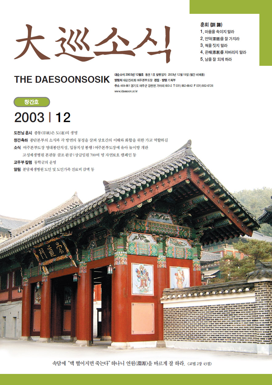 This was a monthly magazine that delivered news about Daesoon Jinrihoe to inspire faith in Dao cohorts. A total of 37 issues were published between December 2003 and November 2006.