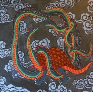 Itineration : This refers to Sangje’s procession throughout the Three Realms, similar to a king making a circuit about his kingdom as part of his governing or administering of justice. Sangje’s Great Itineration took Him throughout the Three Realms that make up the entire World in traditional East Asian cosmology. These Three Realms are (1) the realm of Heaven, including all divine beings and spirits, (2) the Realm of Earth, the world of natural living beings and (3) the realm of Humanity, the world of human civilization and societies. -